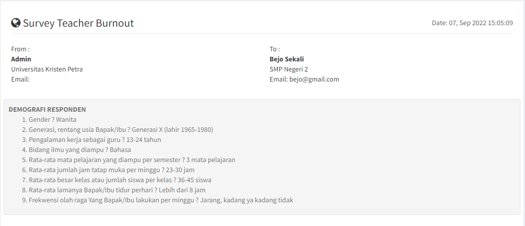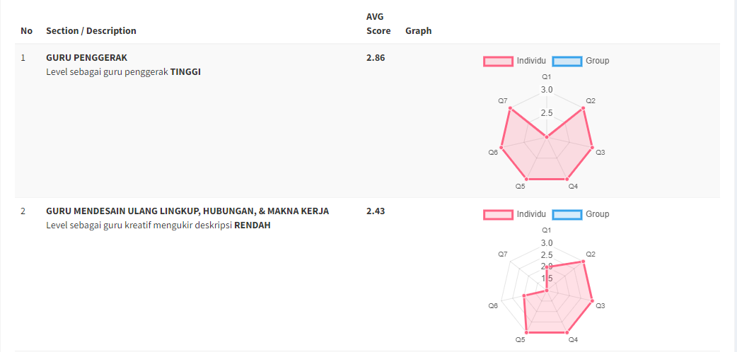 berikut adalah contoh hasil angket individu yang diperoleh setelah pengisian angket.